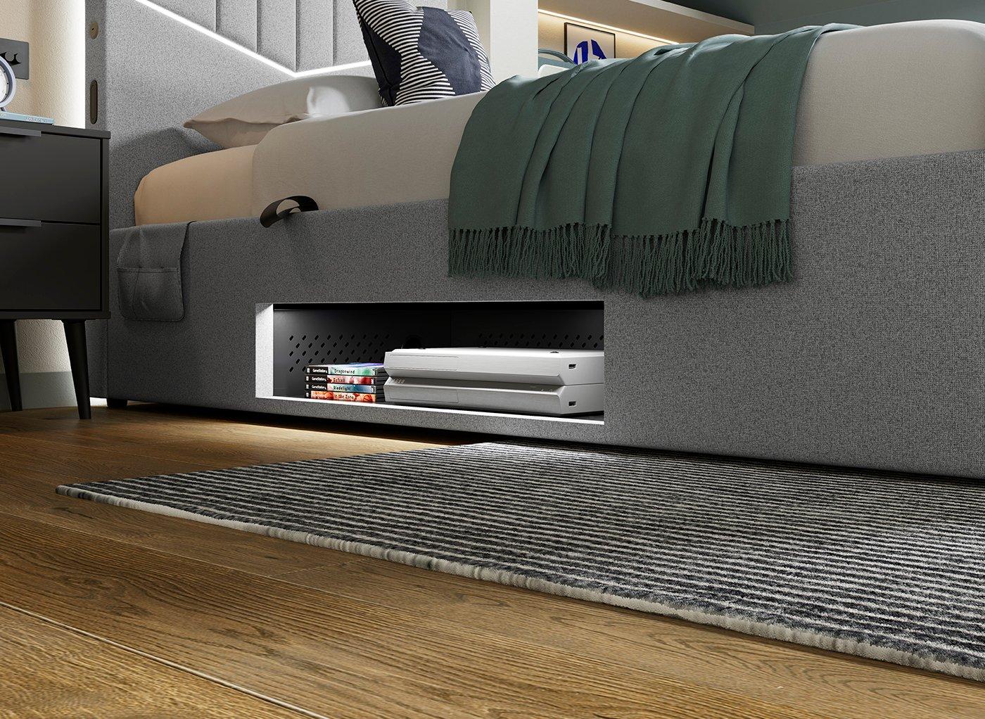 Underneath the bed, there’s heaps of storage for stashing your games and accessories.