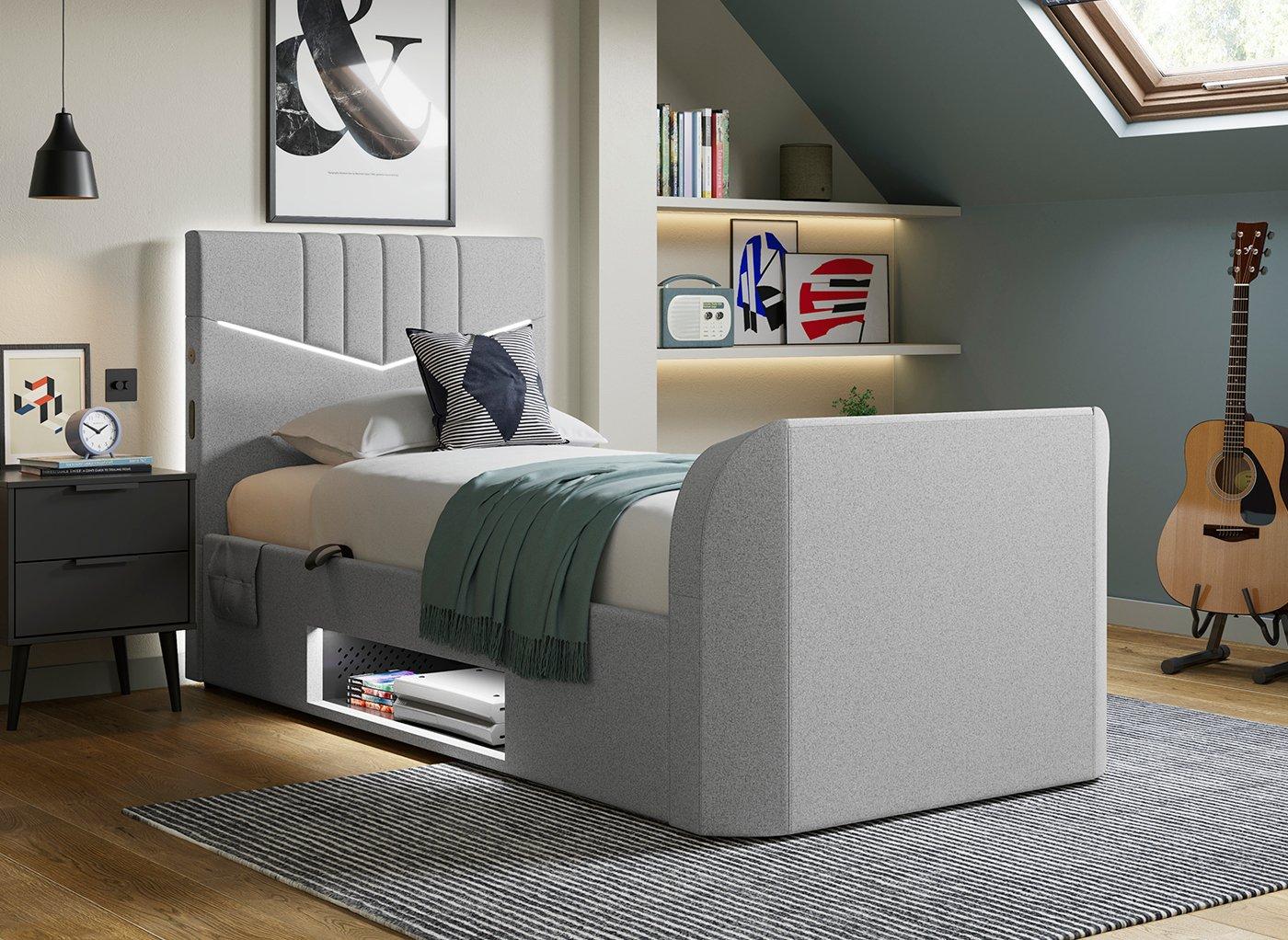 Built-in lighting illuminates the headboard and media tray, making your bed an impressive centrepiece of your gaming den.
