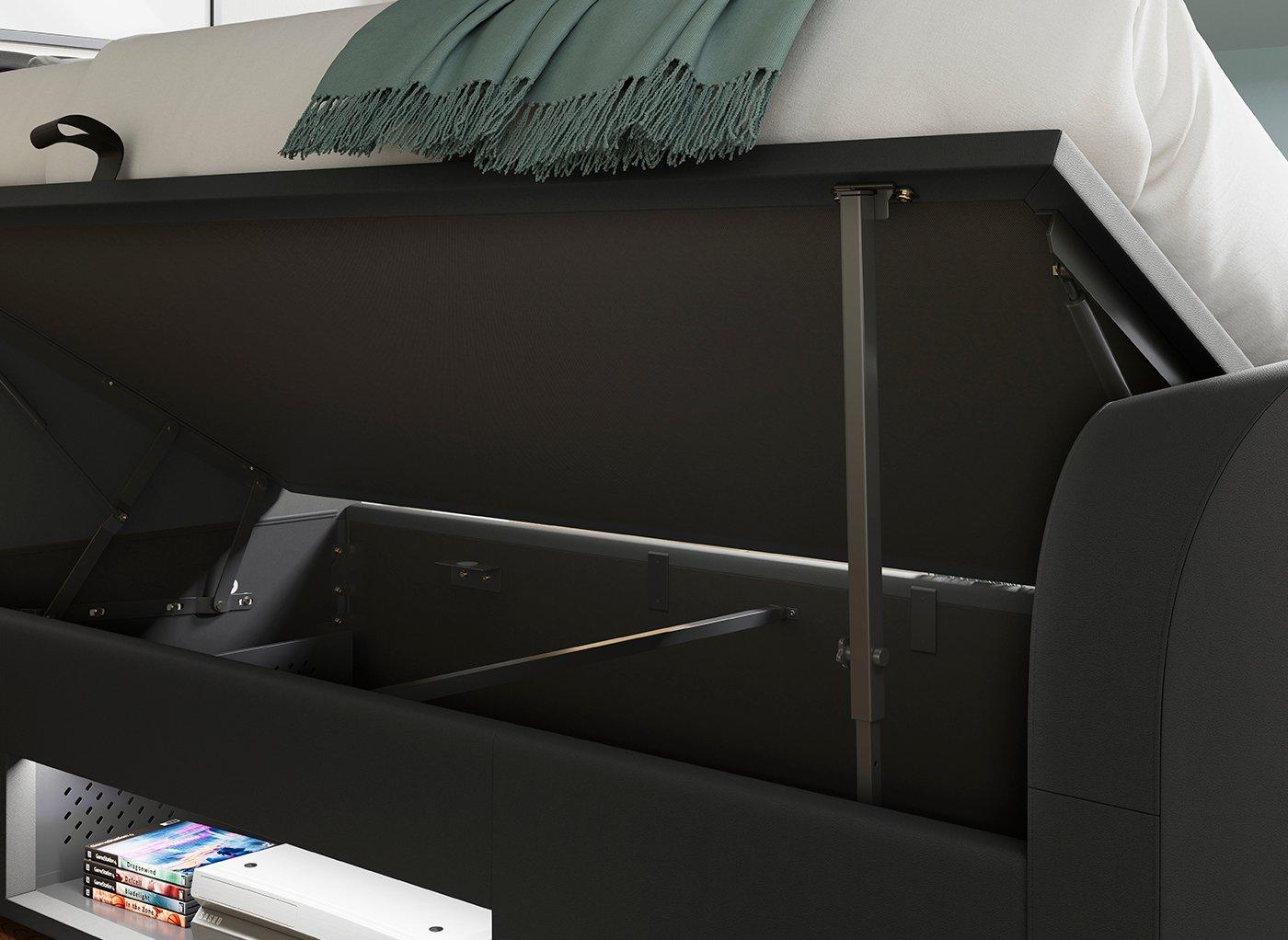 Choose from black faux leather or soft grey fabric for your Quantum bed, each illuminated by bright white lighting.